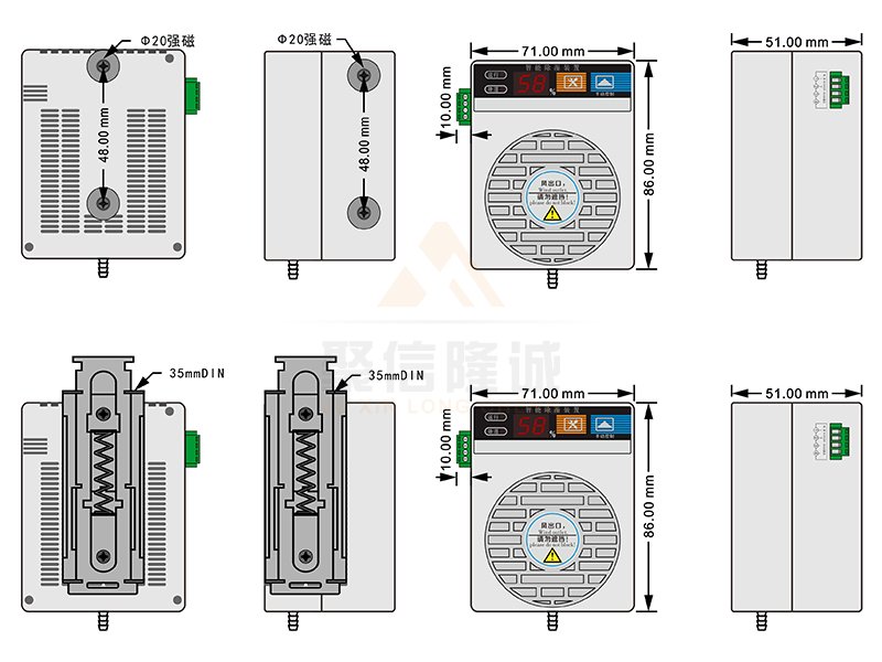 3、除濕風道主動引凝、排出氣體加熱降濕,有效達到了對電氣柜密閉空間防潮除濕的綜合治理;