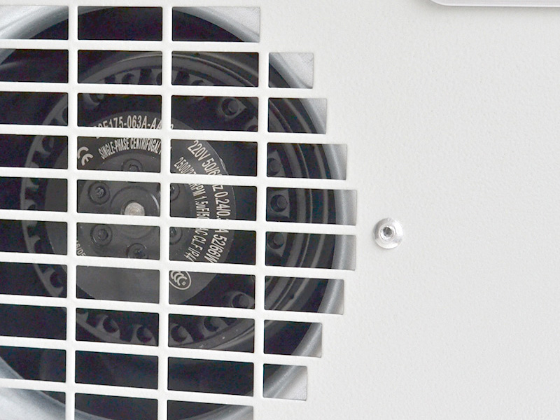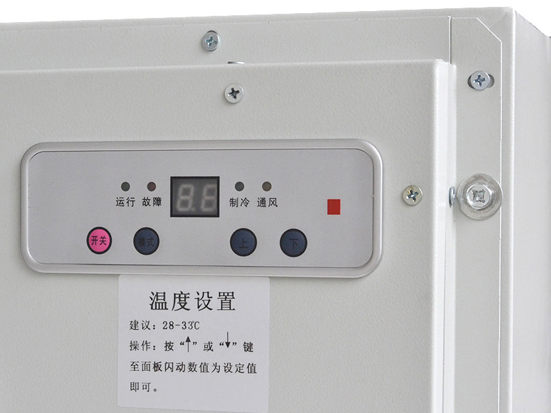 空調器內循環的風扇從上部吸入熱空氣,使空氣不斷通過蒸發器的翅片進行熱交換,并將放熱后變冷的空氣從下部排出空調器,并送向柜內。如此柜內空氣不斷循環流動,達到降低溫度的目的。同時,外部循環的風扇從下部吸入外界冷空氣,經過熱交換后熱空氣從上部排出空調器。