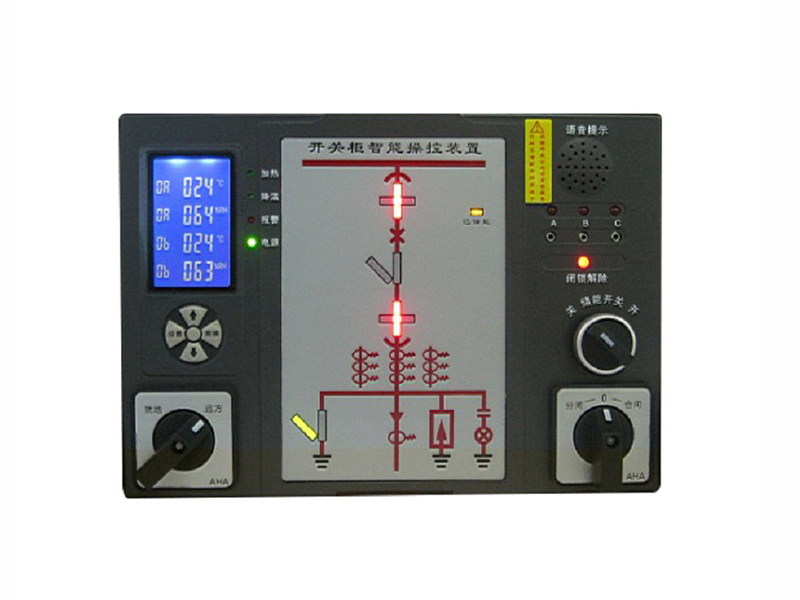 智能操控裝置具有一次回路模擬圖及開關狀態指示,高壓帶電顯示,自動溫濕度控制,人體感應自動照明,語音提示,電參數測量及RS485通訊接口等眾多功能,集操作、顯示于一體。
